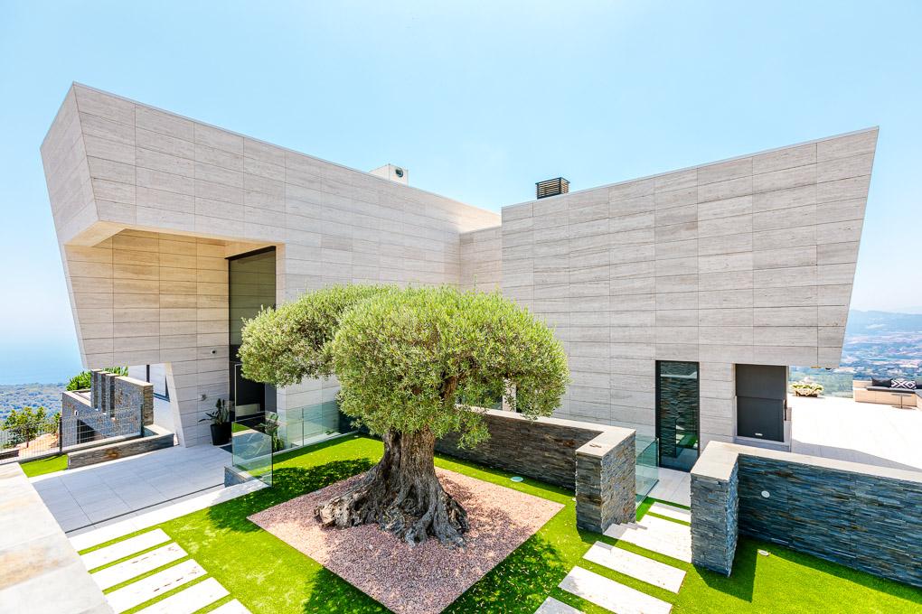 This detached house project, in a natural environment on the Costa Brava at a high altitude and with Mediterranean tones, is set on a plot facing south with a slight slope and sea views, which give the house a dominant position towards the horizon.