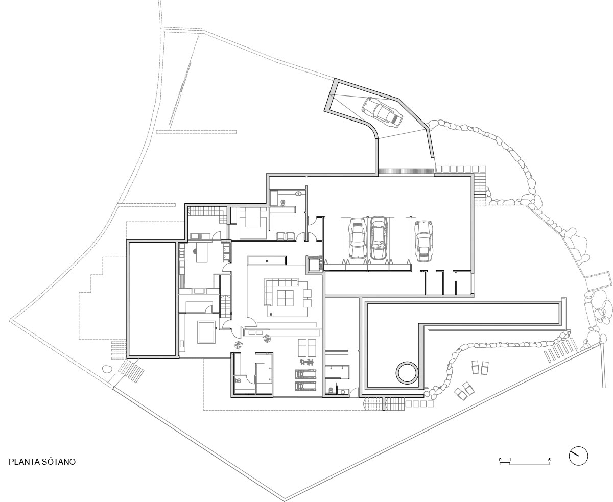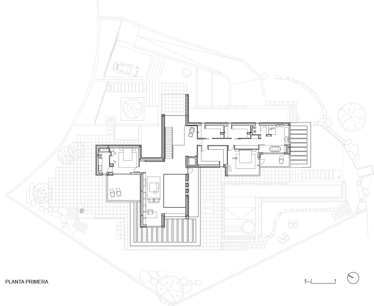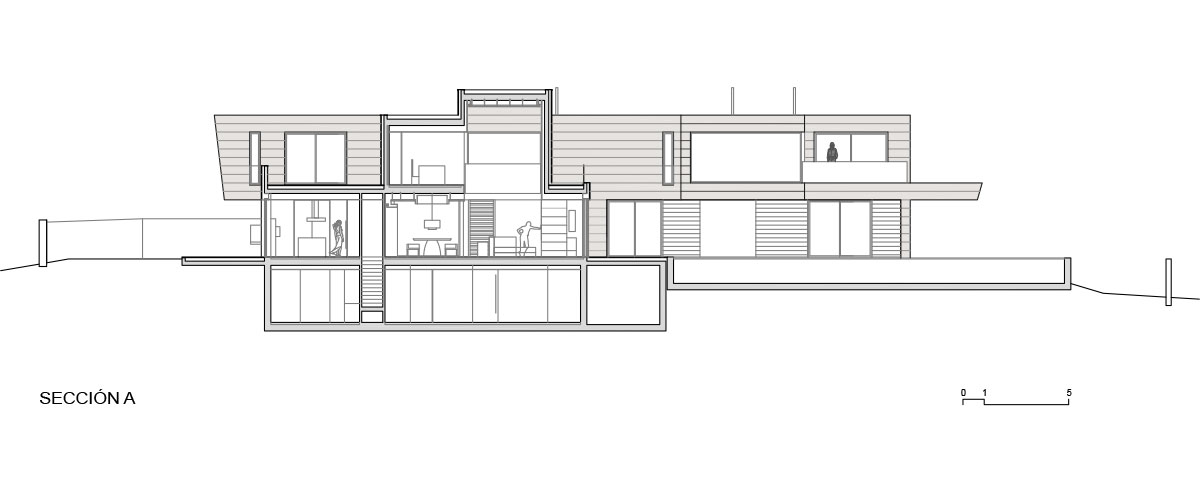 The topography of the land and its orientation were the decisive elements for the design layout, structure and morphology of the house, closed on the north façade, increasing the feeling of indoor privacy, and completely open on the south façade, where you get magnificent views and enjoy natural light.