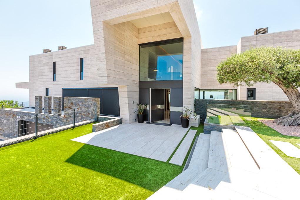 The materials used outside (stone, glass and metal) are cold in character and provide the house with great continuity and architectural monumentality. By contrast, the interior design has used warmer materials and colours (wood, decorative paper, fabrics…) to provide greater comfort. All the interior carpentry in the different rooms has been designed from floor to ceiling to achieve greater light and ventilation.