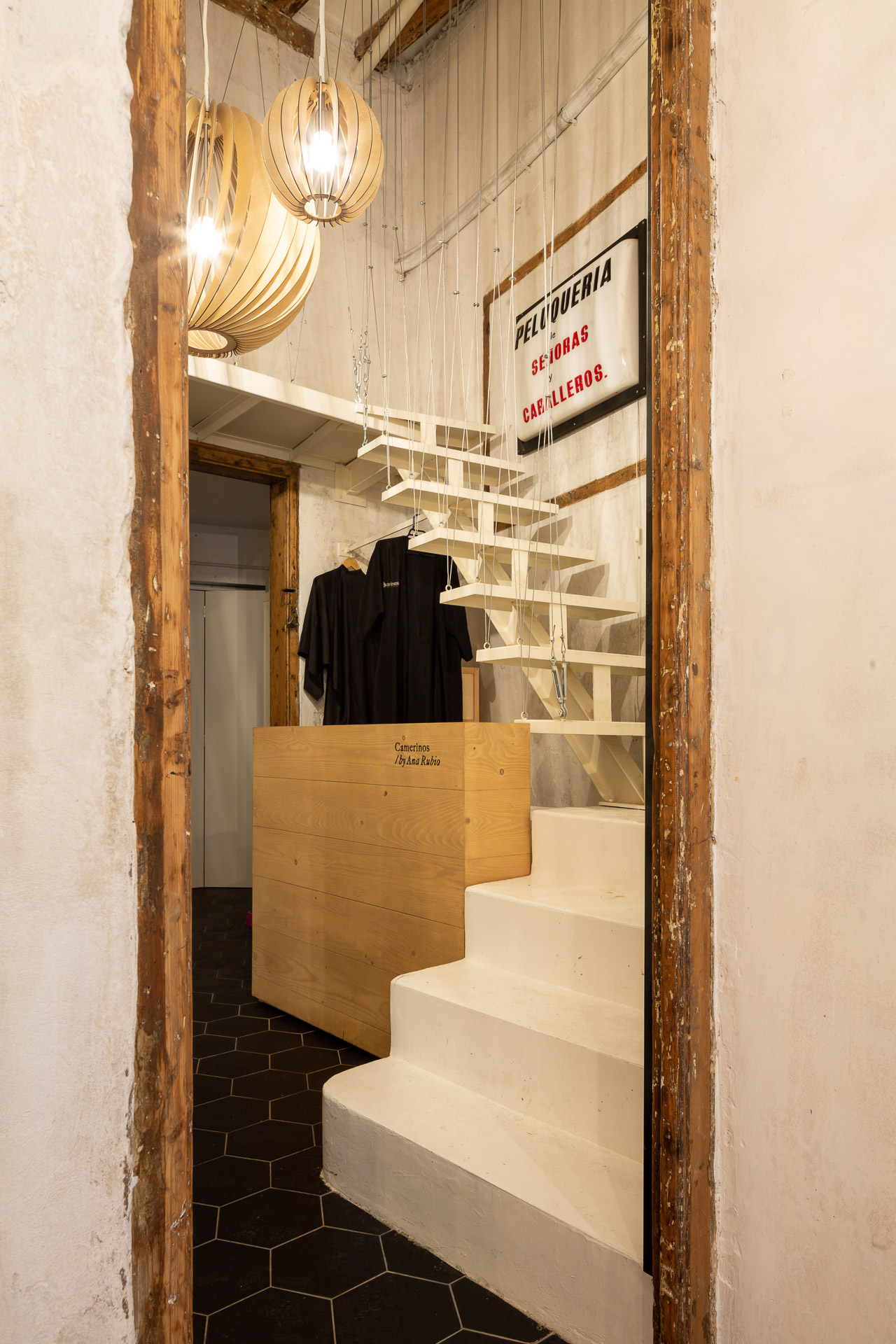 As a result of rebranding her salon, she needed to renovate her workspace completely. A small space with the constructive character typical of the buildings in the oldest neighbourhood in Barcelona, and endowed with a high ceiling that gives it a more spacious feel.