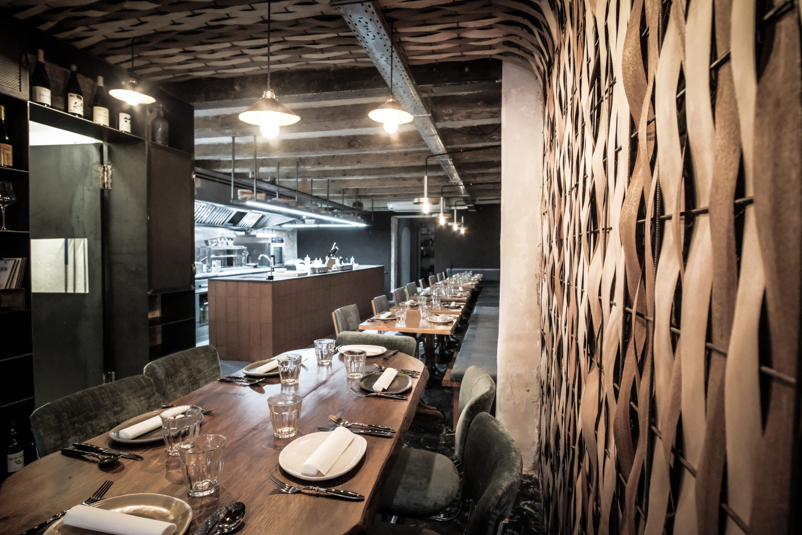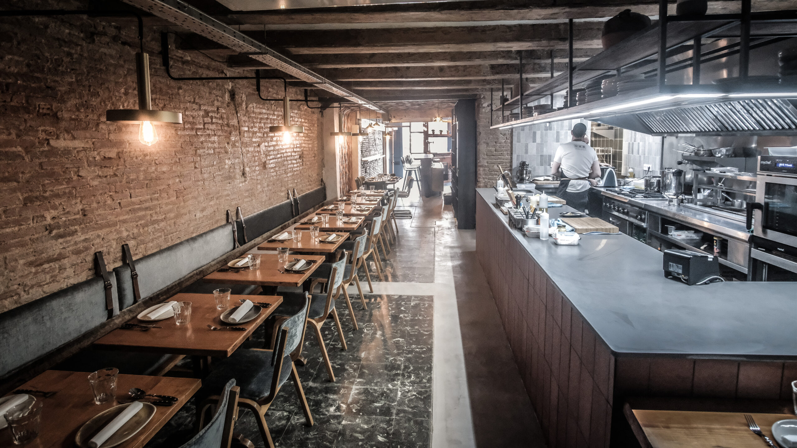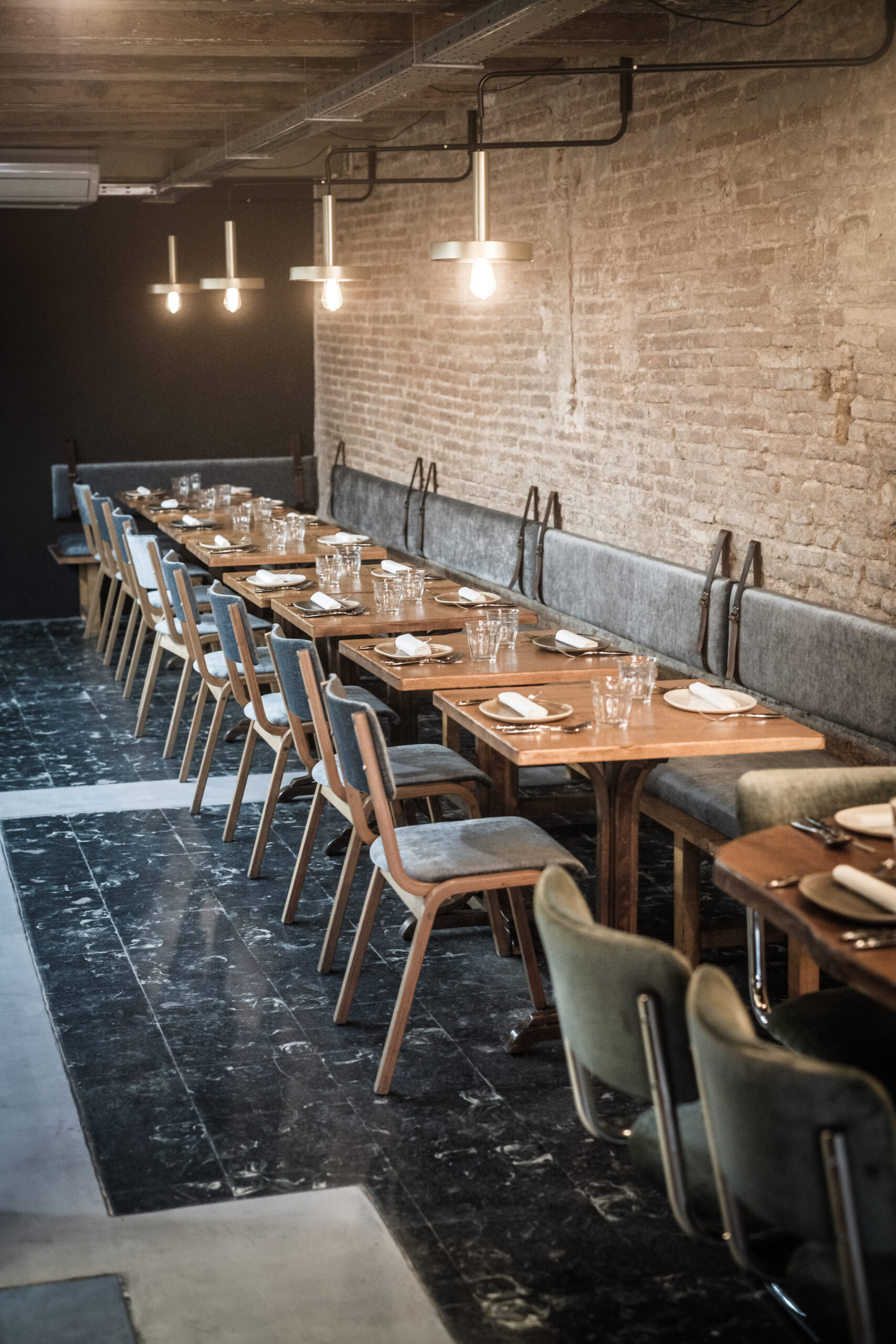 The surrounding materials resulting from the work are characteristic of the early 20th century constructions in this Barcelona neighbourhood where the restaurant is located. All the interior design has sought to create a tavern atmosphere, which was one of Javi and Dani’s main objectives for the project.